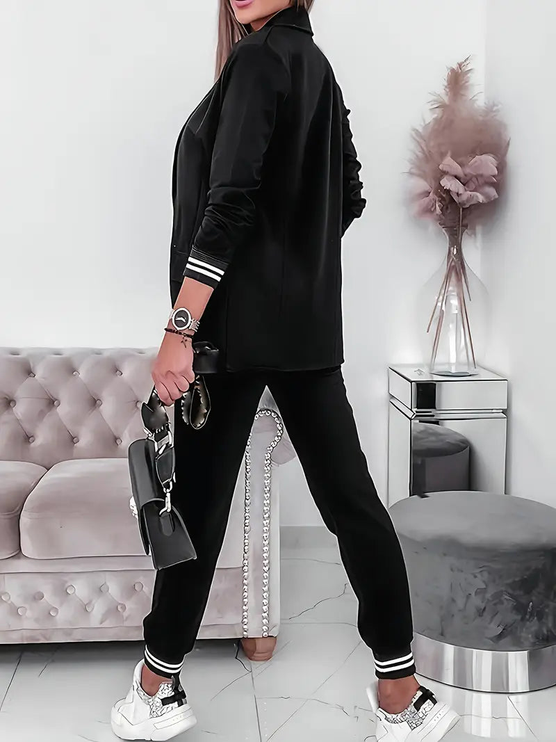 Costum din stofă Barbie, format din sacou și pantaloni. Materialul se așază frumos pe corp, oferind confort și eleganță. Potrivit pentru birou, evenimente sau purtare zi de zi, acest set îmbină stilul modern cu rafinamentul clasic, fiind o alegere versatilă și ușor de accesorizat.
