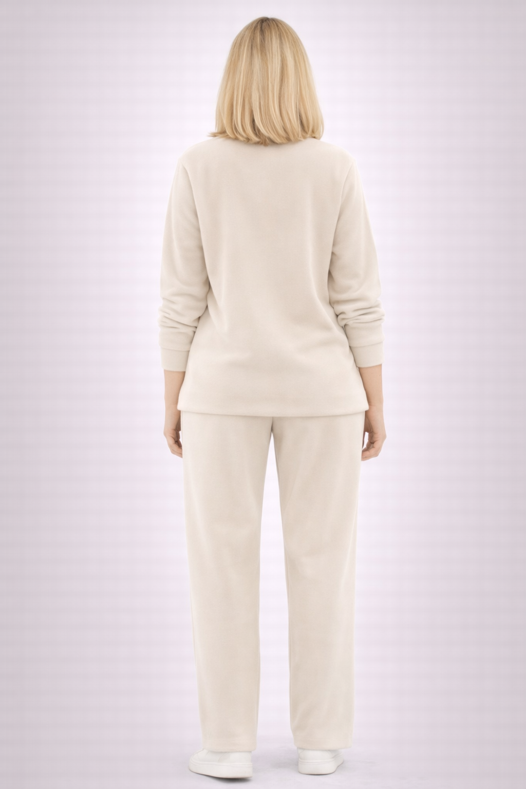 Pantalonii, cu croială dreaptă și talie confortabilă, completează armonios setul și oferă un plus de comoditate. Designul simplu și curat îi face ușor de integrat atât în ținute casual, cât și în combinații sport chic sau smart-casual.