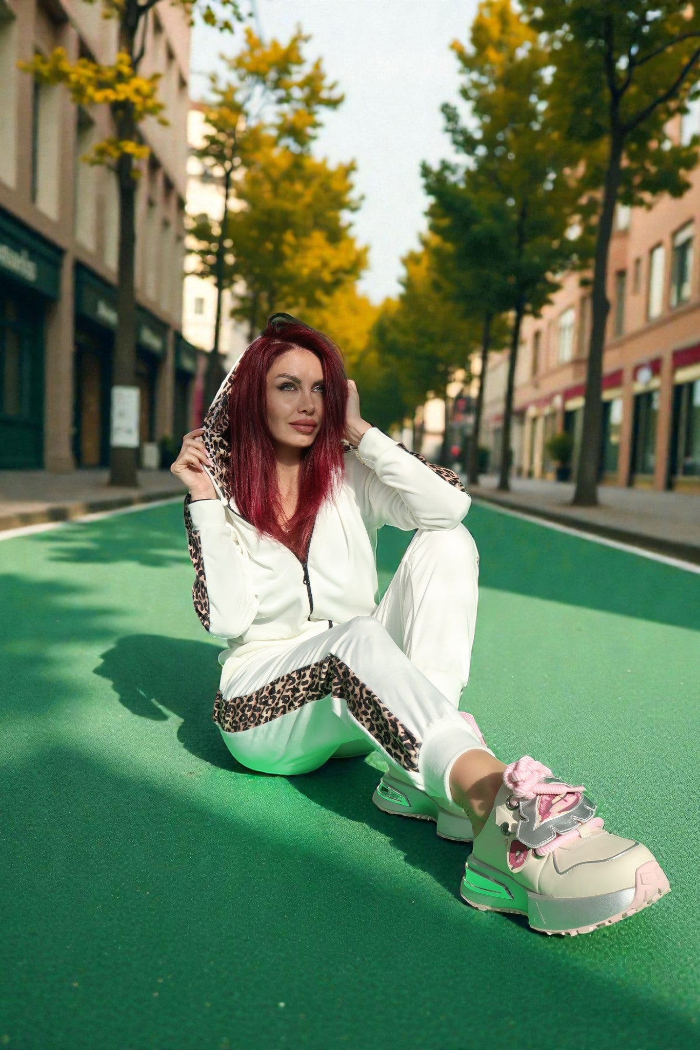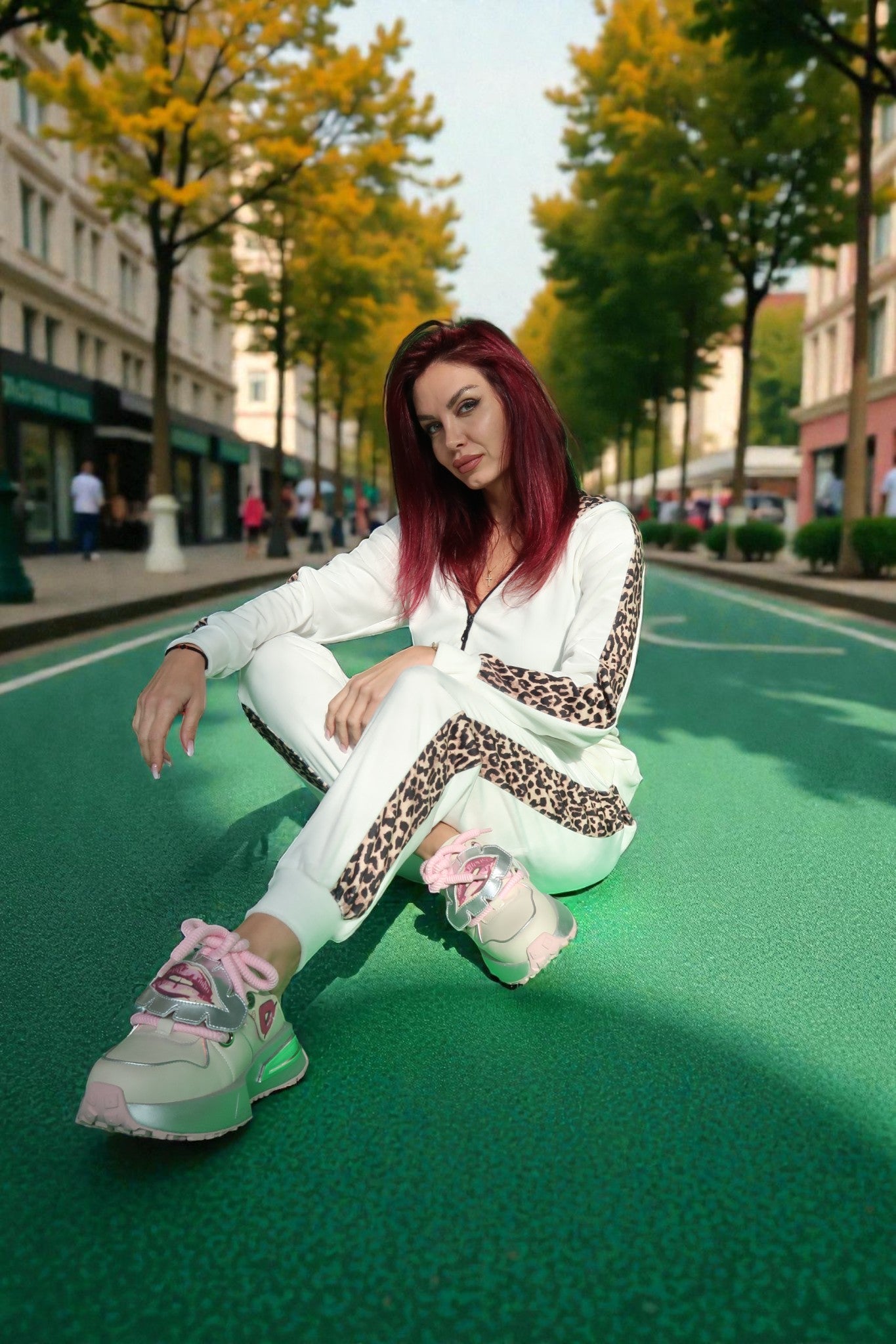 Set trening din catifea super soft, cu dungi laterale în print leopard pentru un look modern și plin de personalitate. Materialul este extrem de plăcut la atingere, elastic și confortabil, ideal pentru purtare zi de zi, acasă, la cumpărături sau ieșiri lejere. Un set stilat care îmbină confortul cu moda.