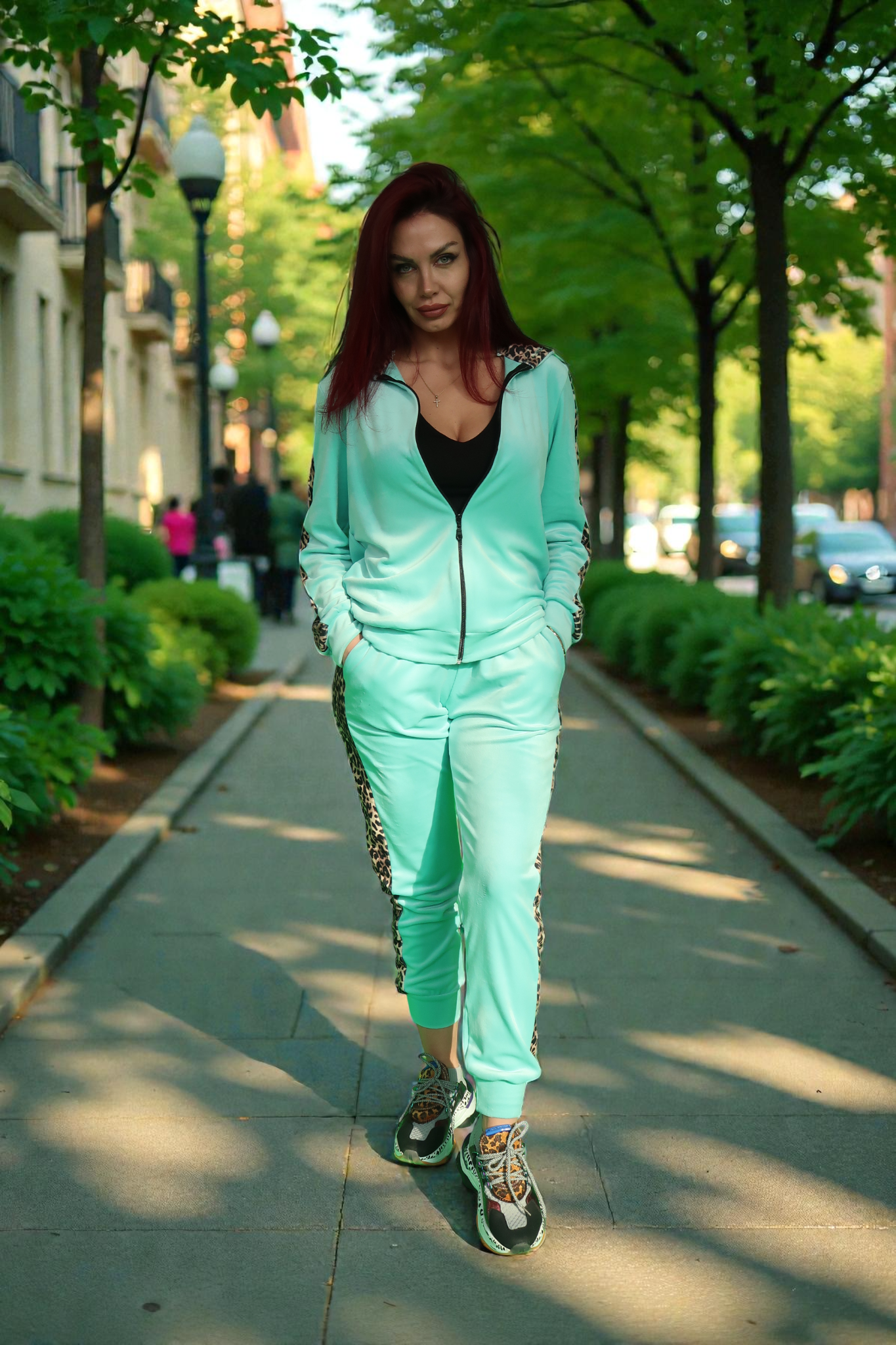 Set trening din catifea super soft, cu dungi laterale în print leopard pentru un look modern și plin de personalitate. Materialul este extrem de plăcut la atingere, elastic și confortabil, ideal pentru purtare zi de zi, acasă, la cumpărături sau ieșiri lejere. Un set stilat care îmbină confortul cu moda.